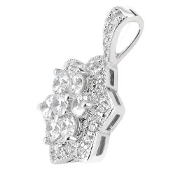 14K White Gold Round Diamond Cluster Pendant For Women 0.5ct