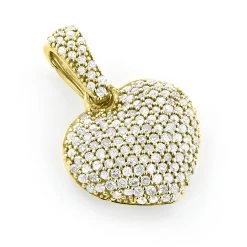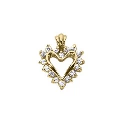 Small 14K Yellow Gold Round Diamond Pave Heart Pendant 0.16ct