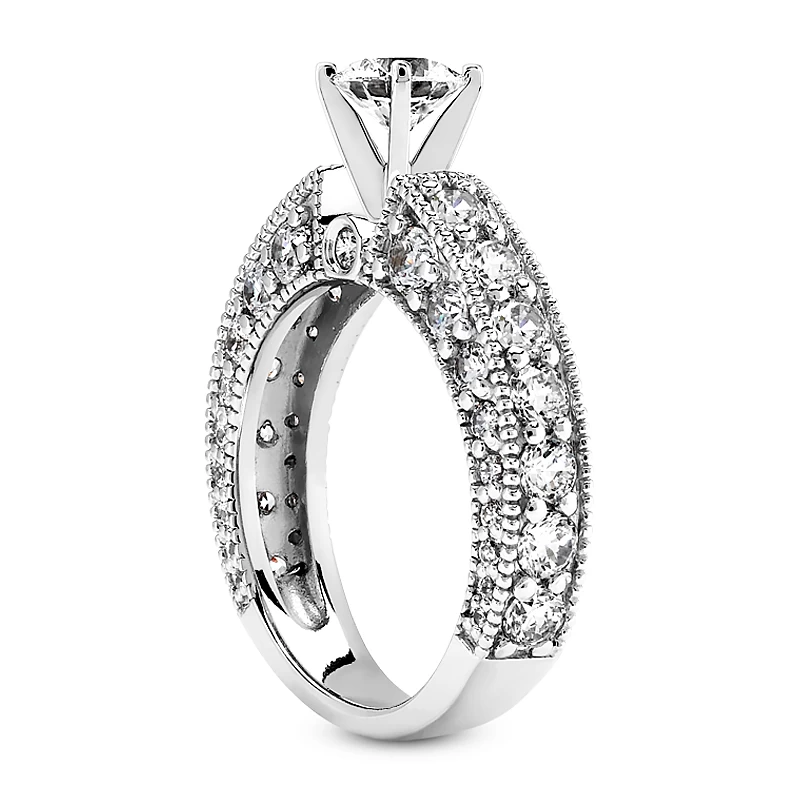 This Platinum Diamond Engagement Ring showcases a 1 carat round diamond in the center and 2.03 carats of round diamonds on the sides for a total of 3.03 carats of dazzling diamonds and is available in Platinum, 18k or 14k yellow, rose, white gold, various sizes, and can be customized with any color and quality diamonds. Center diamond can be from 0.50ct to 5ct (platinum weight and number of stones may vary). Please note: it will take us 3-5 business days to make this ring for you so please plan accordingly. Please contact us at 212-398-3123 if your size or desired option is not listed.