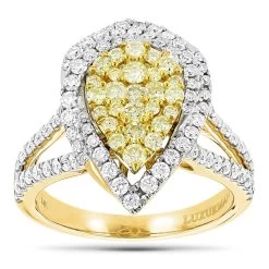 Unique 14K White Gold White Yellow Diamond Pear Shape Cluster Ring For Women 1.5c
