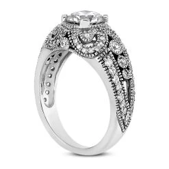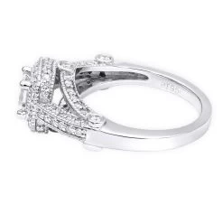 Platinum 1.3 Carat Vintage Style Halo Princess Cut Diamond Engagement Ring For Women