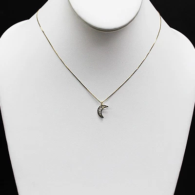 This Sterling Silver Champagne Diamond Moon Pendant showcases 0.18 carats of natural fancy color diamonds. Please note: the chain is for illustration purposes and must be purchased separately. You also can personalize this piece or check we’ve already made and create your own design.