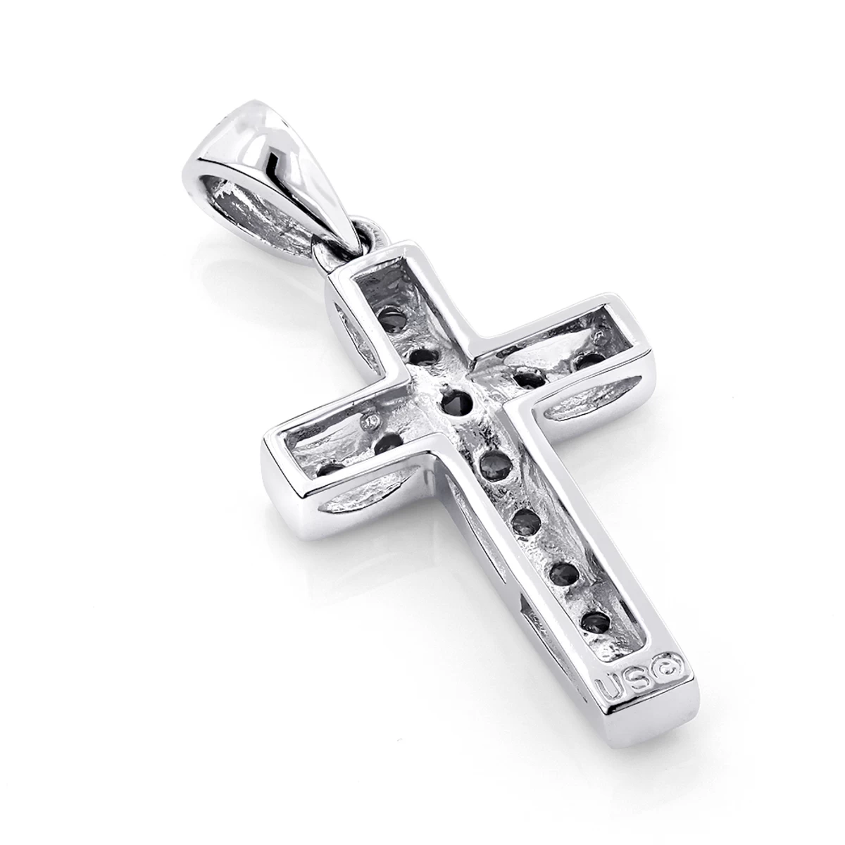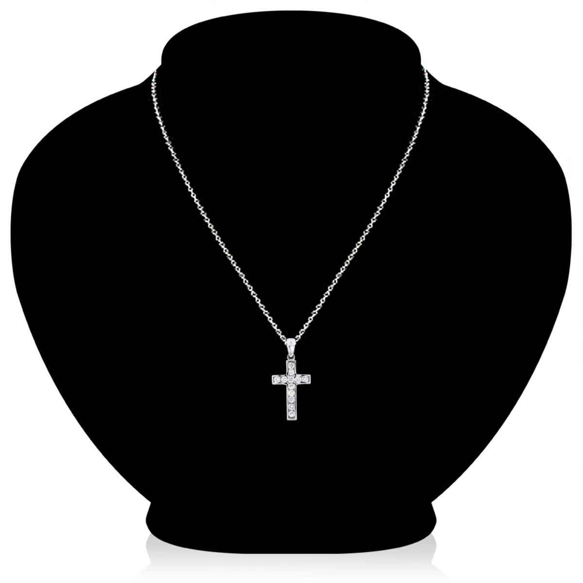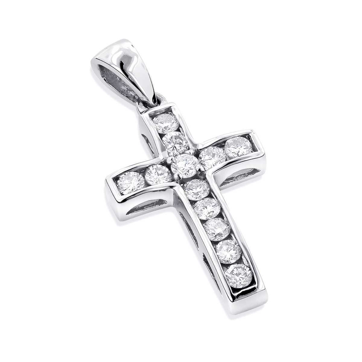 This small 14K Gold Round Diamond Cross Pendant showcases 0.55 carats of genuine round diamonds and a bright polished gold finish. Featuring a simple, elegant look and a high quality craftsmanship, this diamond pendant is available in 14K white, yellow and rose gold and makes a great present. You also can personalize this piece or check we’ve already made and create your own design.