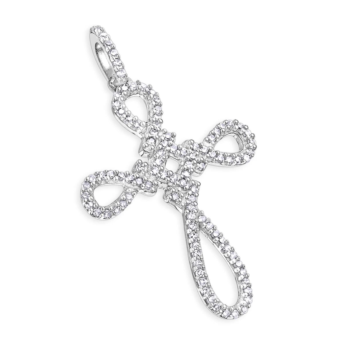 Small 14K White Gold Cross Pendant For Women With Diamonds 0.2ct