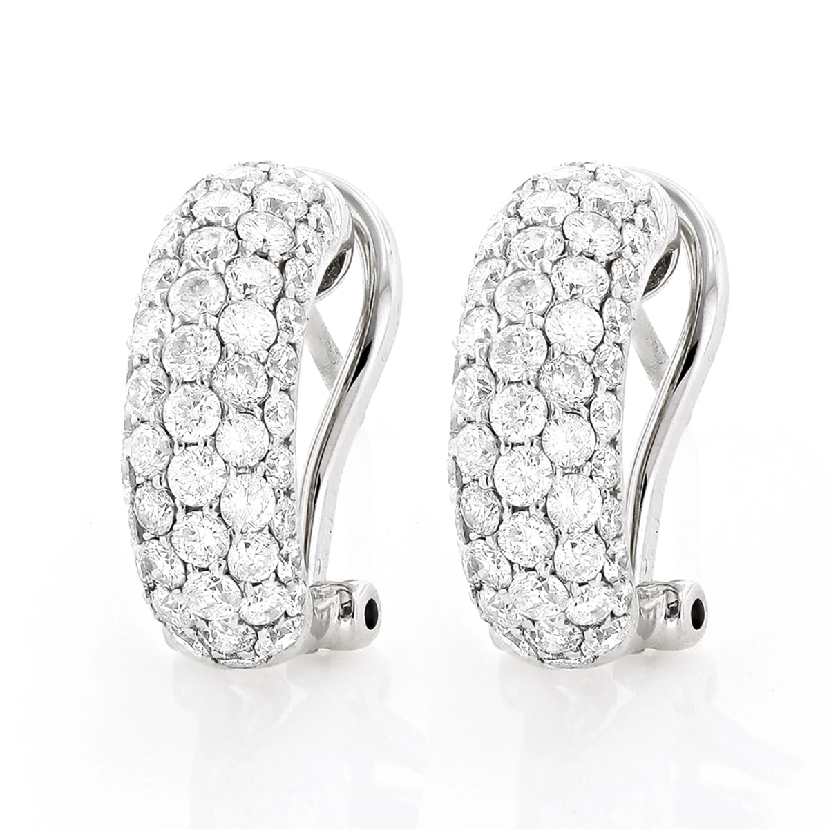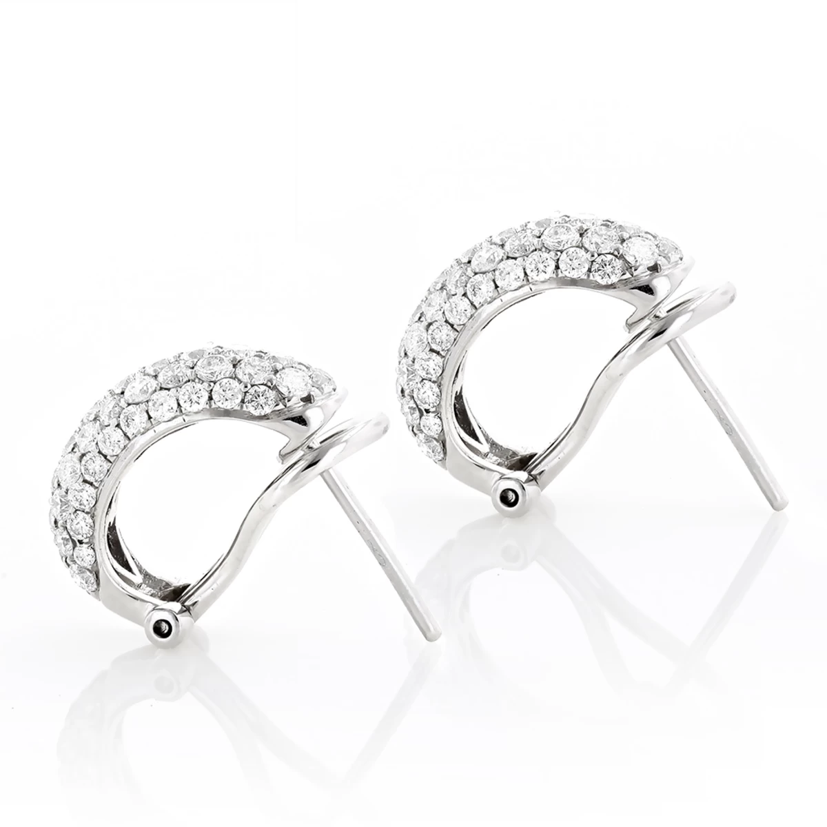 Small 14K White Gold Round Pave Diamond Hoop Earrings 1.87ctw