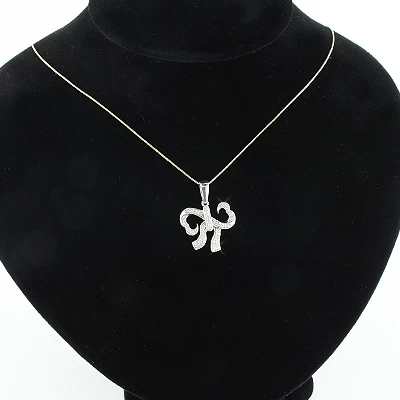 This Lovely Small Heart Bow Diamond Pendant in Sterling Silver showcases 0.17 carats of genuine diamonds and makes a great gift for any occasion. Please note: chain is for illustration purposes and must be purchased separately. You also can personalize this piece or check we’ve already made and create your own design.