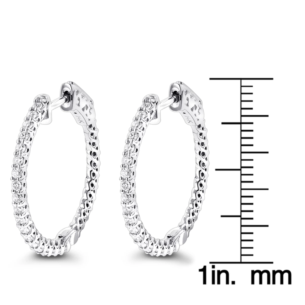 Small Hoops 14K White Gold Diamond Hoop Earrings Inside Out 0.74ct