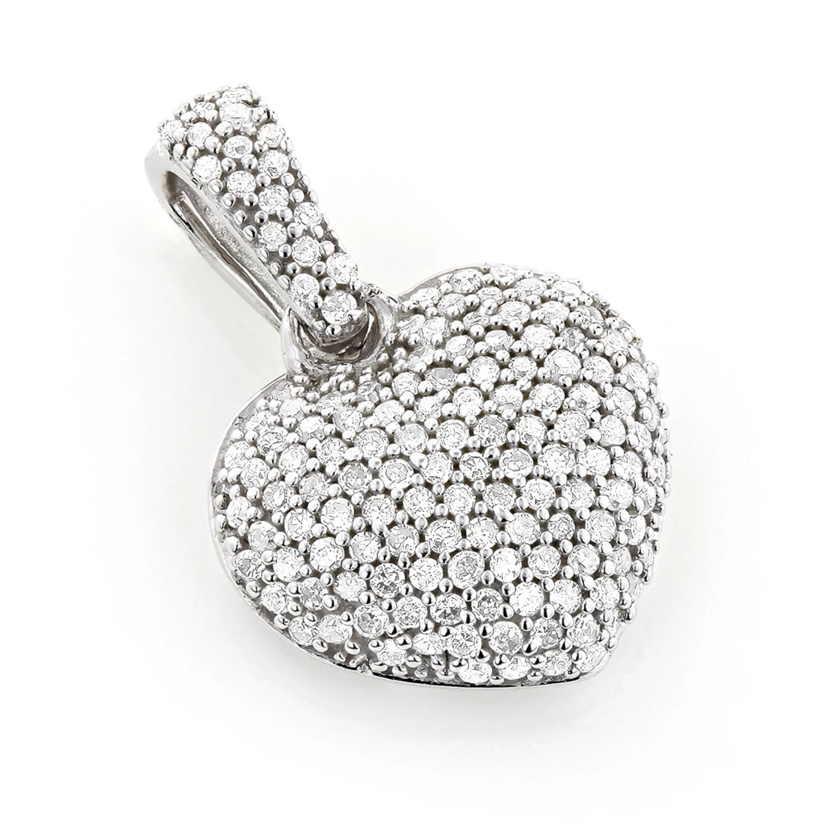 Small Pave Diamond Heart Pendant 14K White Gold 0.50ct