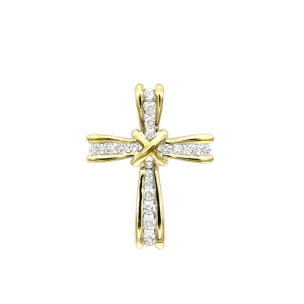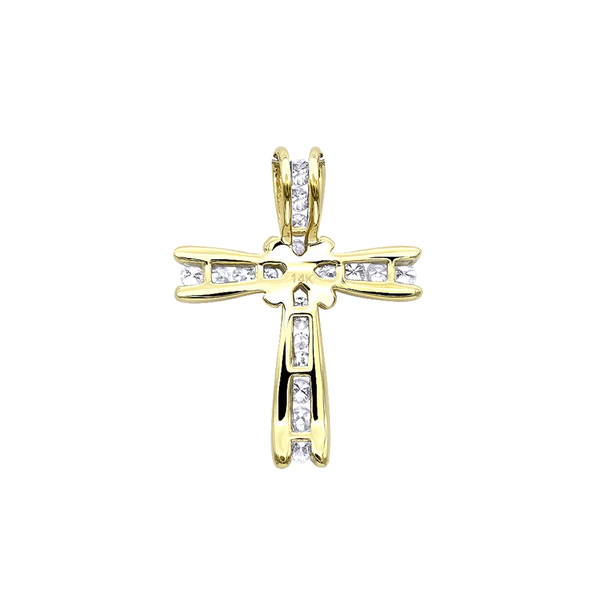 This fabulous 14K Gold Round Diamond Cross Pendant for Women features 19 sparkling high quality round diamonds, each beautifully channel set in a luxurious 14K gold frame. Featuring elegant design this small women’s diamond cross is very elegant, makes a great gift and is available in 14K white gold, yellow gold and rose gold. You also can personalize this piece or check we’ve already made and create your own design.