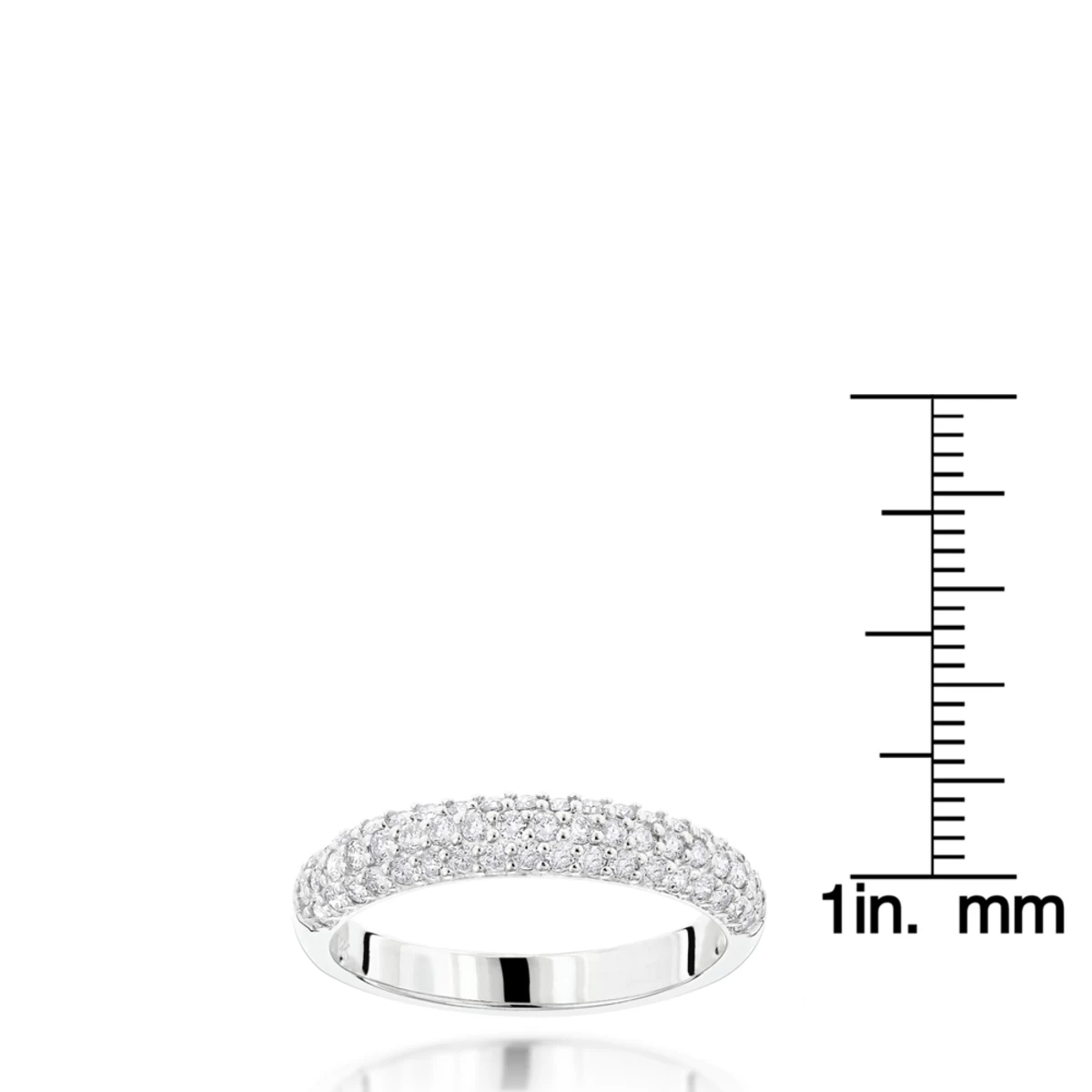 Thin 1 Carat Pave Diamond Bands 14K White Gold 3 Row Round Wedding Ring For Women