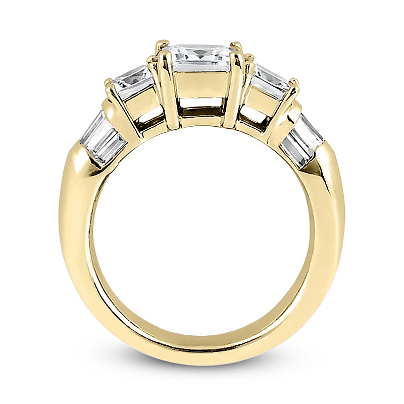 This 3 stone diamond ring features 0.30ct princess cut center diamond, two 0.23ct princess cut and eight 0.05ct baguette cut diamonds on the sides and is available in Platinum, 18k or 14k yellow, rose or white gold and various sizes. This 3 stone diamond ring can also be custom built to your specifications with diamond color and clarity of your choice. It might accommodate from 0.30ct to 1.50ct center diamond and from 0.23ct to 0.63ct and 0.05ct to 0.10ct side diamonds (each). Call us at 212-398-3123 if you have any questions or would like us to customize it to your specifications.
