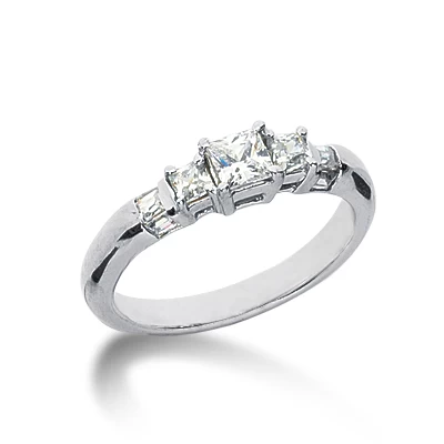 Thin 14K White Gold Diamond 3 Stone Engagement Ring 1.16ct