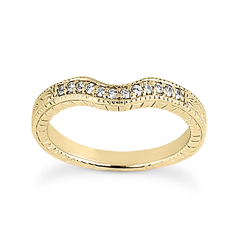 This 18K Gold Diamond Engagement Band showcases 0.12 carats of dazzling round diamonds and is available in Platinum, 18k or 14k yellow, rose, white gold, various sizes, and can be customized with any color and quality diamonds. Please contact us if you would like to customize it.