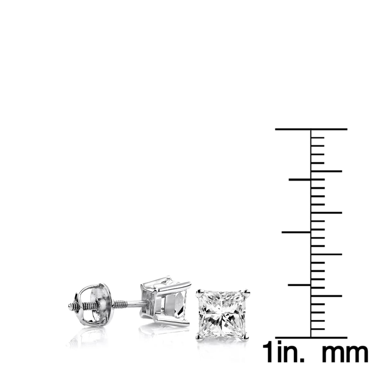 Two Carat 18K White Gold Solitaire Princess Cut Diamond Stud Earrings