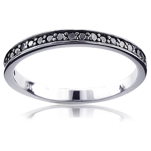 Ultra Thin 10K White Gold Slim Stackable Black Diamond Women’s Wedding Band 0.21ct