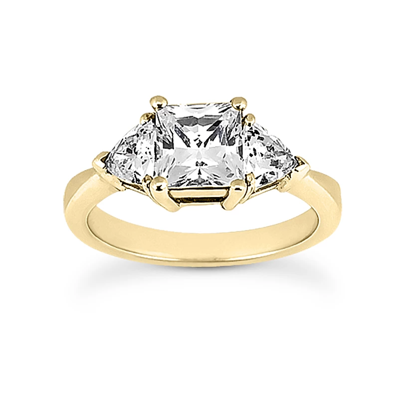 This 18K Gold Diamond Three Stones Engagement Ring showcases a 0.40 carat princess cut diamond in the center and 0.30 carat of trillion cut diamonds on the sides for a total of 0.70 carat of dazzling diamonds and is available in Platinum, 18k or 14k yellow, rose, white gold, various sizes, and can be customized with any color and quality diamonds. Center diamond can be from 0.40ct to 2.25ct (gold weight and number of stones may vary). Please note: it will take us 3-5 business days to make this ring for you so please plan accordingly. Please contact us at 212-398-3123 if your size or desired option is not listed.