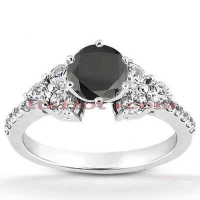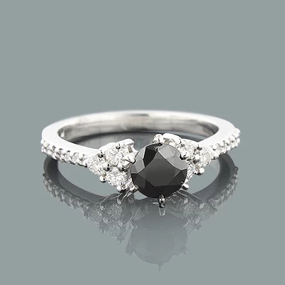 Ultra Thin Black Diamond Engagement Ring 0.85ct 14K White Gold