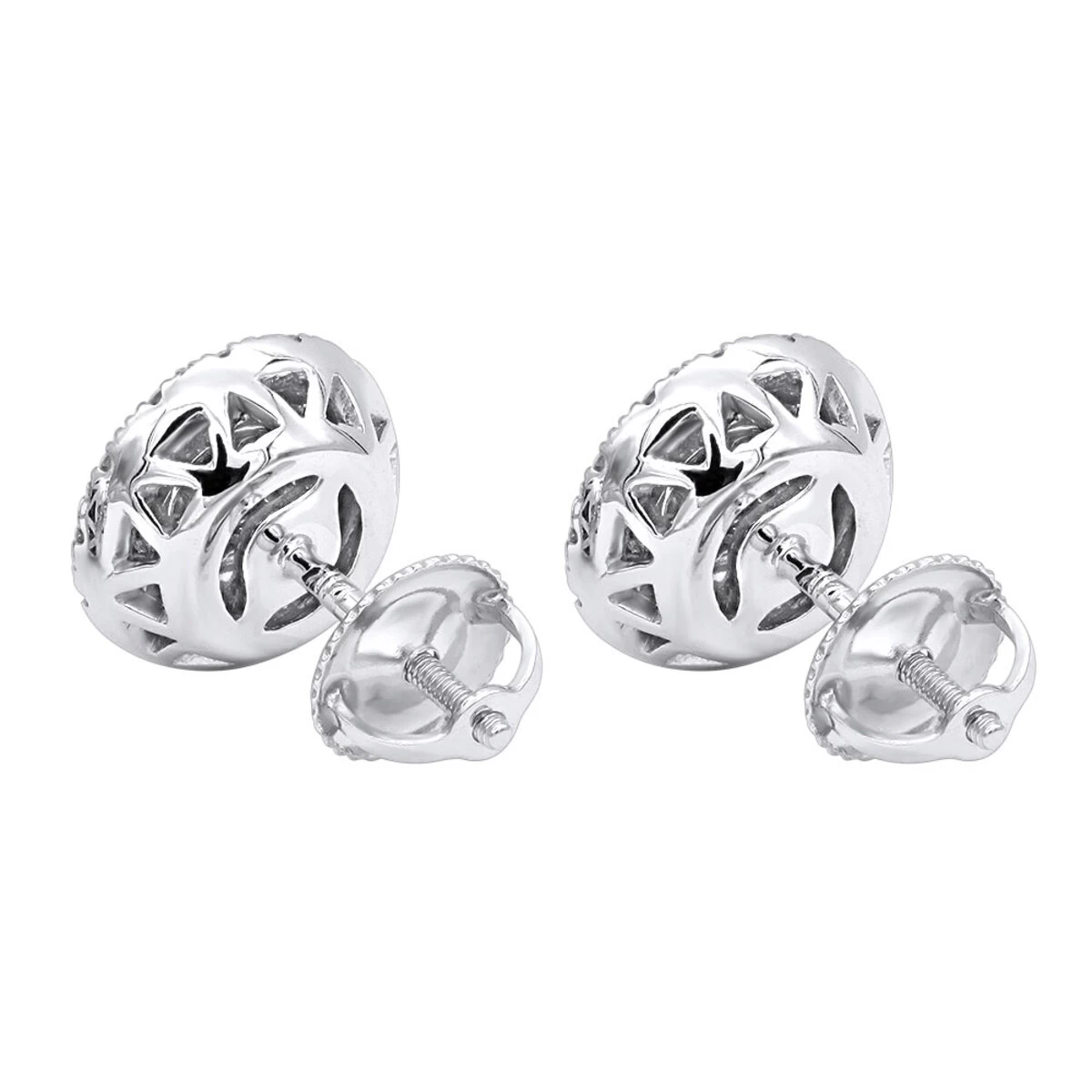 Unique 14K White Gold Large Diamond Stud Earrings Clusters 2 Carat Halo Look