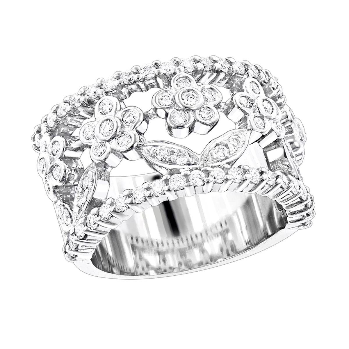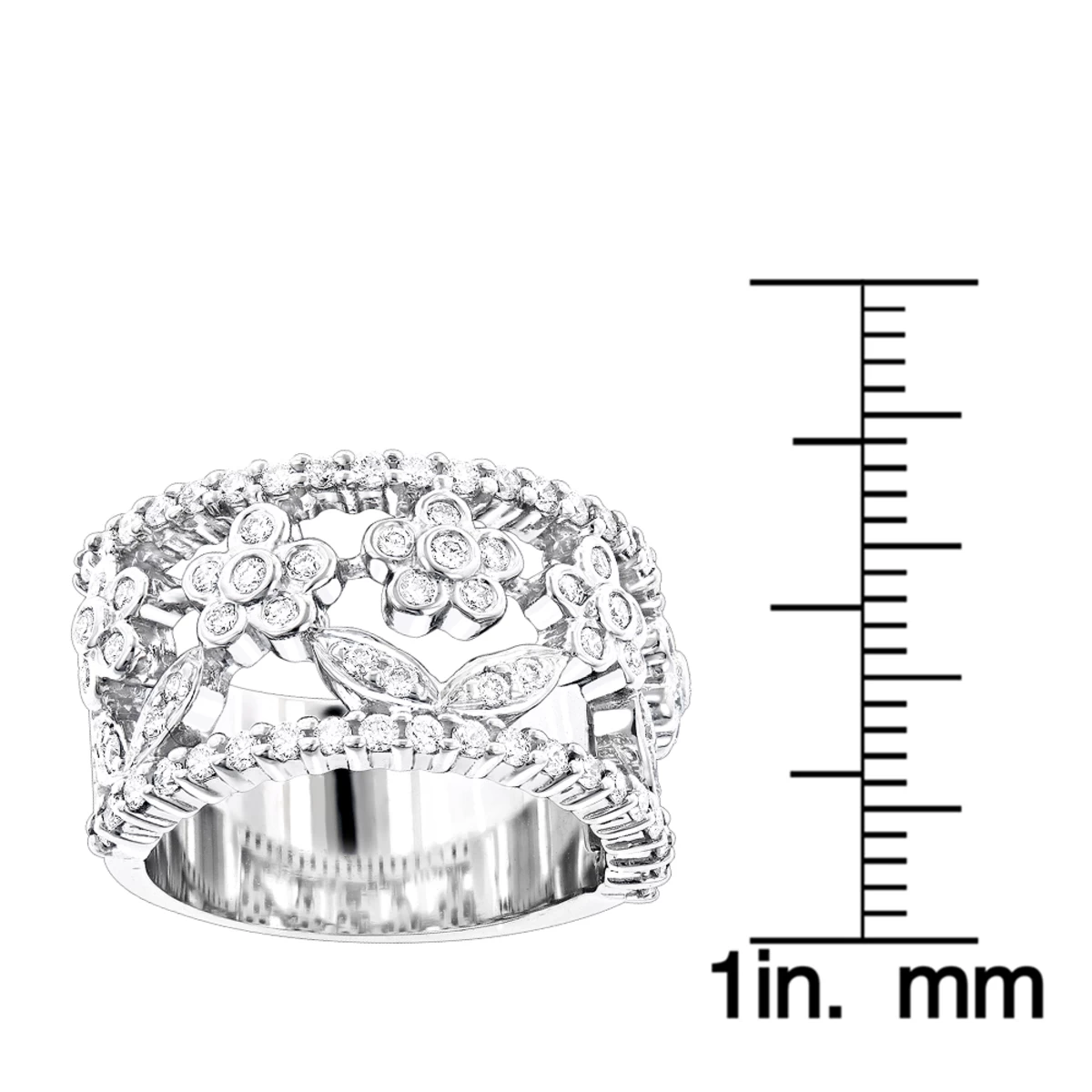 Unique 14K White Gold Round Diamond Flower Ring For Women By Luxurman 0.82ct