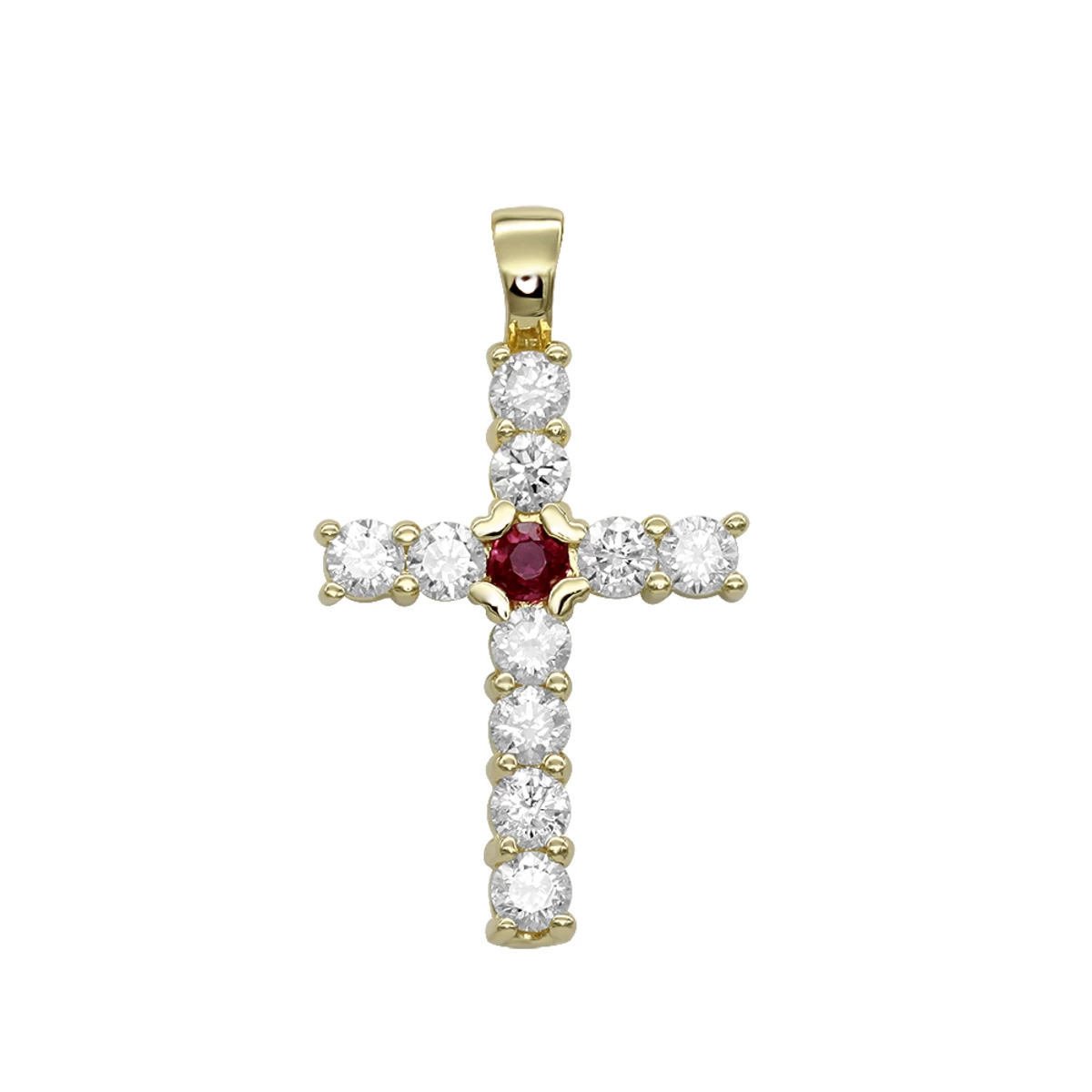 Be the first to review “Unique 14K Yellow Gold Ruby And Diamond Cross Pendant For Women 1.33ct By Luxurman” Cancel reply