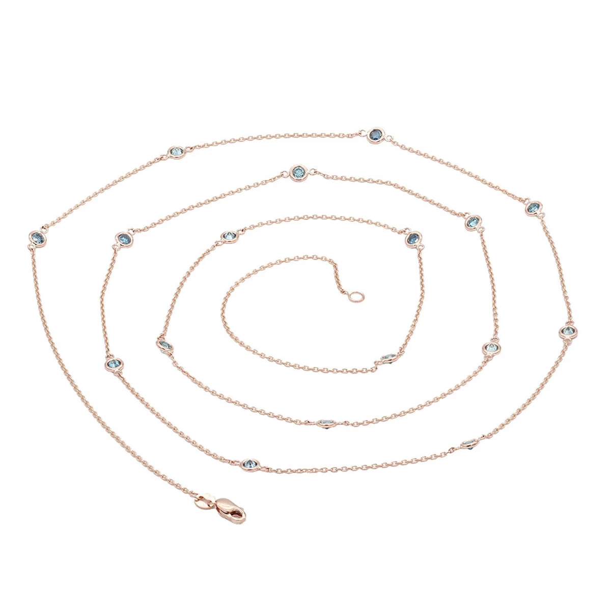 Unique 36inch Blue Diamonds By The Yard Women’s Necklace 14K Yellow Gold Chain 1.4ct