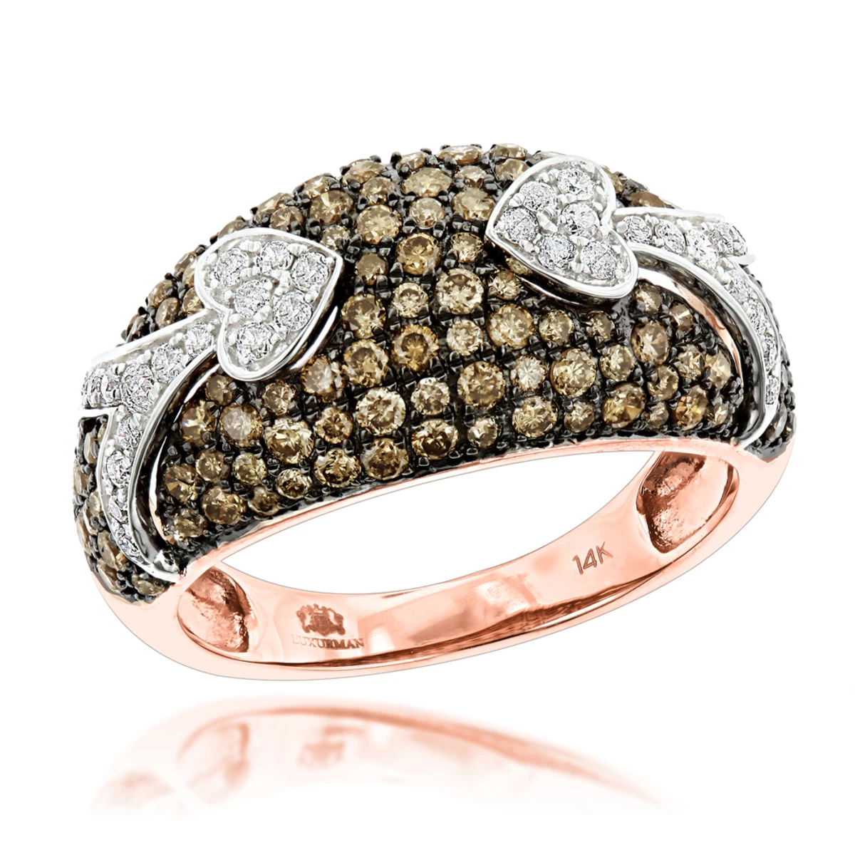 Unique Luxurman Champagne Diamond Right Hand Ladies Ring 1.5ct 14K Rose Gold