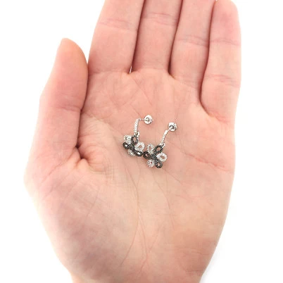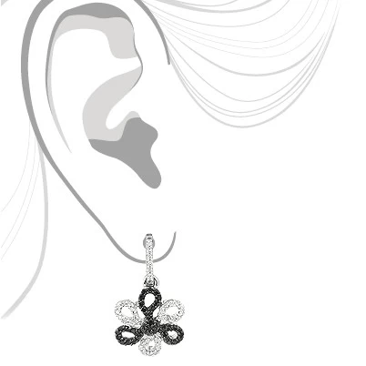 White Black Diamond Flower Earrings 0.51ct 14K White Gold